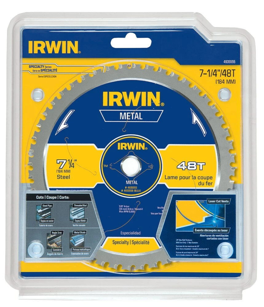 IRWIN addresses all your portable metal cutting needs with its 7-1/4-in 48-tooth carbide circular saw blade. It’s manufactured with metal cutting-grade carbide that quickly and smoothly cuts through ferrous steel. The saw blade teeth are also designed to withstand hard impact, minimize wear, and extend the life of the product. This 7-1/4-in circular saw blade features an anti-kickback design that reduces sparks, resulting in a safer metal cutting job for you. The product also has anti-vibration vents that contribute to sharper, more precise cuts. Don’t wait for your next project to start before switching to this high-grade metal-cutting circular saw blade. Get this high-quality IRWIN product today.