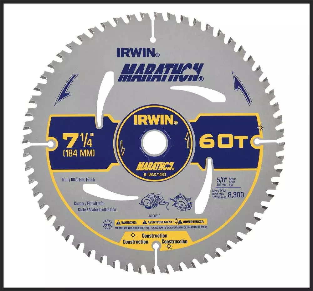 Irwin Marathon 7-1/4-in 60T Saw Blade