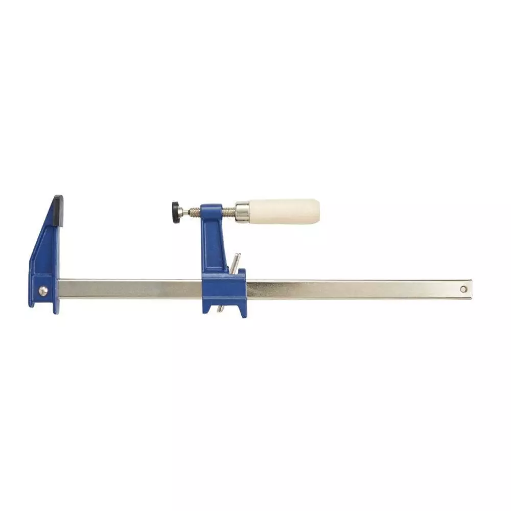This bar clamp features an I-beam bar that reduces flexing and bowing. It has a clutch lock for easy movement along bar.