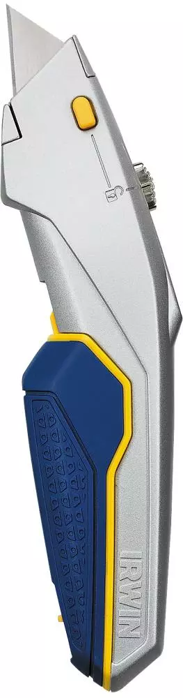 This ProTouch retractable utility knife features a quick change blade mechanism. The trigger grip provides the ability to cut on the pull.