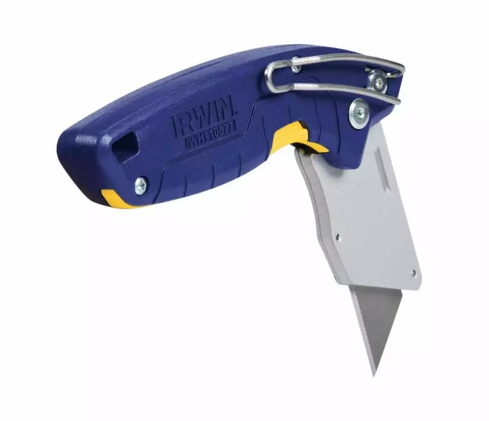 Irwin ProFlip™ folding knives offer essential features to help PROs deliver on the job. The ProFlip™ mechanism allows the user to quickly open and close the knife one handed. For tough applications, the protected blade change button helps prevent accidental blade release. Onboard blade storage ensures a clean cut with a fresh blade. Comes with Irwin shatterproof bi-metal blades.